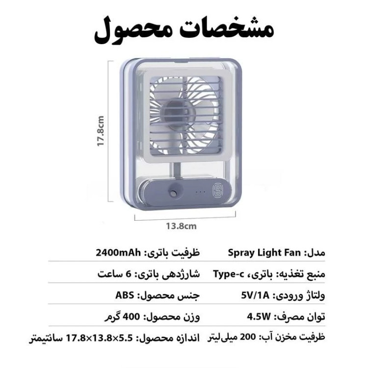 پنکه شارژی مه پاش رومیزی مینی فن پنکه مه پاش پنکه خودرو