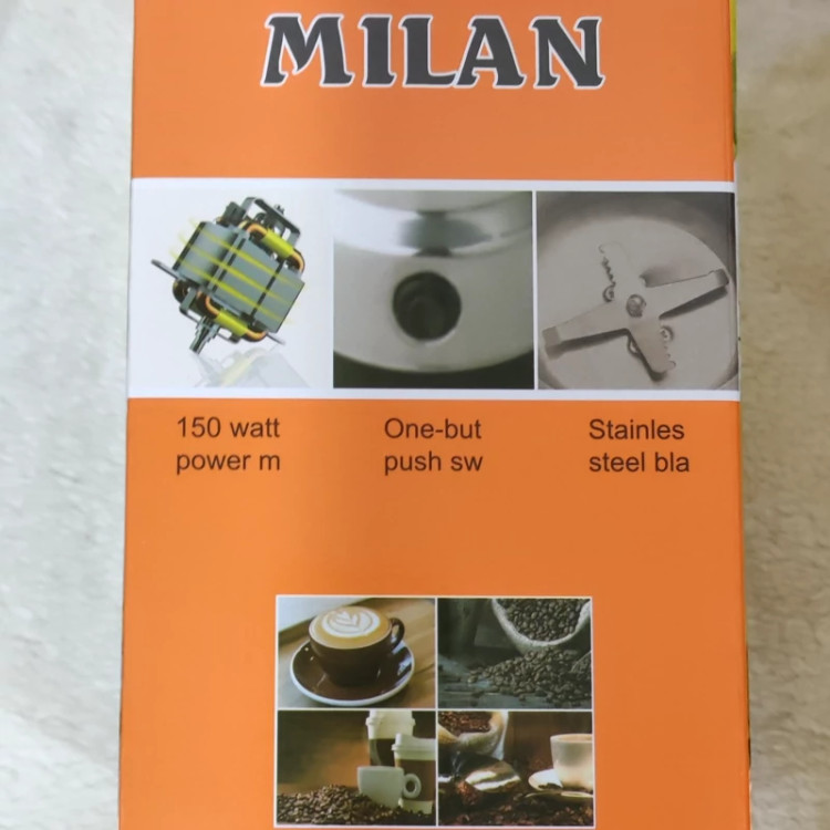 آسیاب میلانو مدل 8500جنس بسیار باکیفیت و عالی 150وات با تیغه از فولاد ضد زنگ.با کاسه استیل ضد زنگ جهت آسیاب کردن هل . ادویه.حبوبات.آجیل