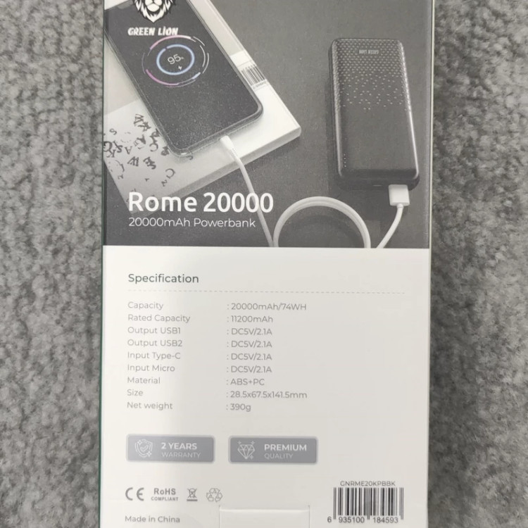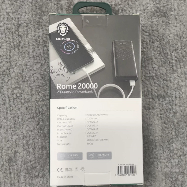 پاوربانک رم 20000 میلی آمپر گرین Green Rome PowerBank 20000mAh