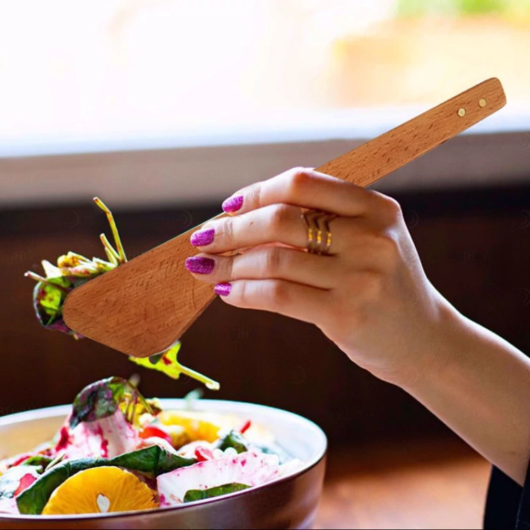 انبر سالاد خوری چوبی ، محصولی جدید با طراحی کاربردی و البته کمی متفاوت نسبت به نمونه های معمول می باشد . این انبر از جنس چوب مرغوب و باکیفیت تولید شده که دارای انعطاف پذیری مناسب برای استفاده ساده تر درون دست است ، به طوری که نیازی به فشار زیاد برای جمع شدن دهانه نبوده و البته مقاومت بیشتری در برابر شکستگی احتمالی پیدا کرده . انبر سالاد چوبی دارای سری با طراحی متفاوت برای سهولت در برداشتن مواد غذایی از داخل ظرف می باشد ، بنابراین علاوه بر سالاد برای سرو غذاهای مختلف بر روی میز غذا نیز از آن می توانید بهره ببرید . زیبایی ظاهری در عین سادگی را به دیگر خصوصیات محصول اضافه کنید و از آن برای تکمیل سرویس چوبی آشپزخانه خود بهره ببرید .