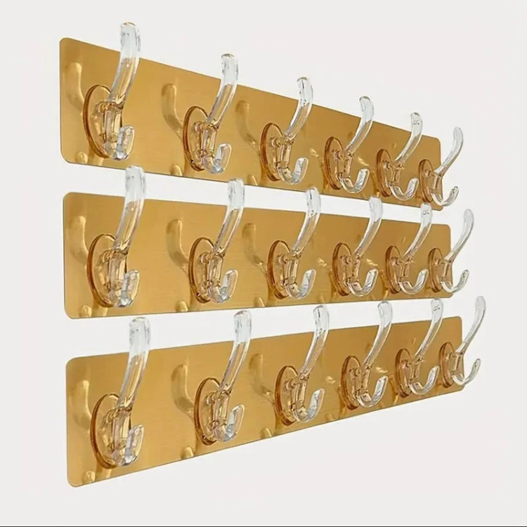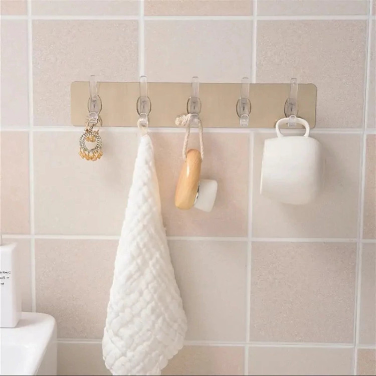 آویز چسبی دیواری ، نمونه ای جدید و البته بسیار کاربردی تر از محصولات مشابه با گستره استفاده بیشتر و محدودیت کمتر می باشد . این چوب لباسی دارای 6 آویز از جنس پلاستیک فشرده مقاوم بوده که همگی با فاصله معین بر روی یک برچسب ورقه ای شکل قرار گرفته اند که از آنها می توان برای آویزان کردن و نگهداری لوازم و وسایل مختلف بهره برد . برچسب نگهدارنده گیره ها دارای پهنای 6.4 و طول 35 سانتی متر می باشد که دارای چسبندگی خوب برای اتصال بر روی سطوحی نظیر کاشی و سرامیک است . اما بزرگترین ویژگی آویز چسبی حوله را باید انعطاف پذیری آن عنوان کرد ، چراکه امکان نصب محصول بر روی قسمت های مختلف از جمله دیوارهای زاویه دار را فراهم آورده ، بدین ترتیب از این کالا برای برخی فضاهای دارای محدودیت نیز می توان بهره برد . آویزهای کالا از نوع بی رنگ شفاف و سطح چسبی زیرین نیز به رنگ طلایی ارائه می شود که قابلیت ست شدن با تم های رنگی مختلف محیطی را خواهد داشت .