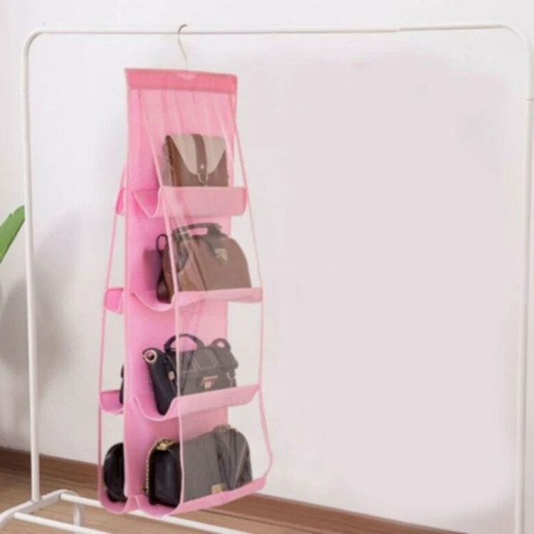 آویز کیف داخل کمد چهار طبقه با 8 محفظه برای نگهداری 8 عدد کیف، محصولی نوین و بسیار کاربردی است . این نگهدارنده به صورت دوطرفه همراه با قلاب آویز جهت آویزان کردن داخل کمد و یا پشت درب می باشد . آویز کاور و نگهدارنده کیف امکان استفاده از حداقل فضای ممکن برای نگهداری کیف های شما را فراهم می کند . فضای محفظه های نگهدارنده به گونه ای طراحی شده که علاوه بر کیف از آن می توان جهت نگهداری کفش نیز استفاده نمود . از دیگر ویژگی های این آویز ، جلوگیری از کثیف شدن ، له شدن و خراب شدن کیف و کفش است .