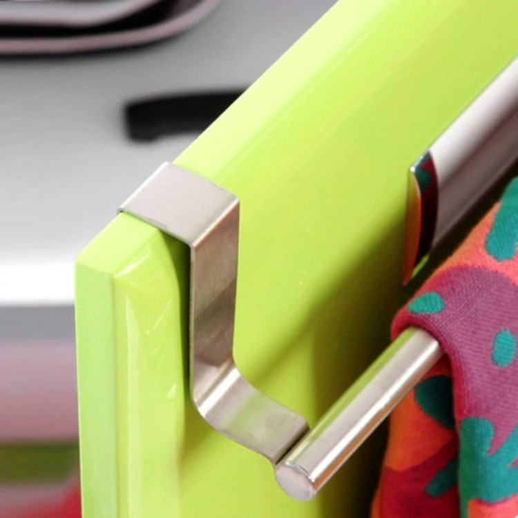 آویز حوله کابینت آشپزخانه از جنس فلز لعاب کاری شده ، مقاوم در برابر رطوبت و همچنین استحکام فوق العاده بالا یک وسیله کاربردی در آشپزخانه می باشد که به شما امکان آویزان کردن حوله ، دستکش و دستمال را روی درب کابیت می دهد. با خرید آویز حوله کابینتی علاوه بر نظم بخشیدن به محیط آشپزخانه ، دسترسی شما به حوله . دستکش هنگام آشپزی و شستشوی ظروف آسان تر خواهد شد.