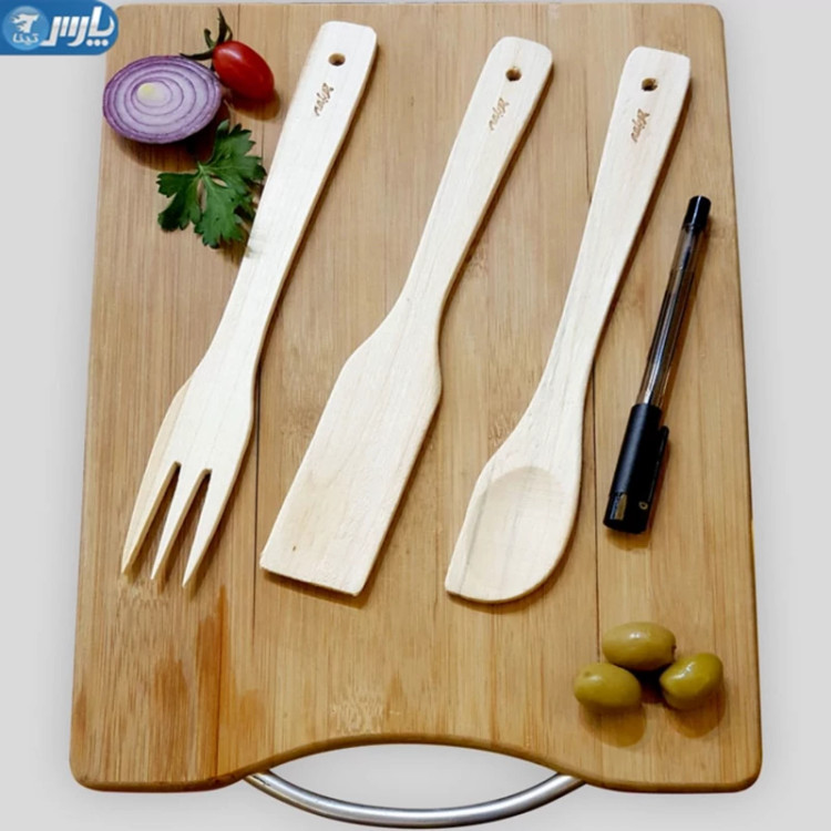 ست کفگیر ملاقه چوبی سپیدار ، شامل سه ابزار پر کاربرد آشپزخانه است . محصولی با طراحی مدرن ، ظاهری زیبا و عملکردی کاملاً کاربردی که می توان از آن برای آشپزی با انواع ظروف دارای لایه های حساس نظیر تفلن استفاده نمود . این ست ، سه محصول کفگیر ، قاشق و چنگال را شامل می شود که از جنس چوب صنوبر (سپیدار) با کیفیت تولید شده اند . قاشق چوبی دارای دو لبه منحنی شکل و صاف با زاویه 90 درجه می باشد که امکان استفاده از آن برای ظروف مختلف اعم از گرد و مستطیل شکل را فراهم می کند . کفگیر نیز دارای صفحه صاف با لبه باریک شده می باشد که علاوه بر کارکرد معمول ، قابلیت استفاده از آن را برای سرخ کردن مواد غذایی در کنار چنگال فراهم می کند . زیبایی ظاهری محصولات امکان استفاده از آنها برای سرو برخی از غذاها و یا دسرها نظیر سالاد را نیز به وجود آورده است . مقاومت ، قابلیت شست و شو و امکان حمل و جابه جایی آسان برای استفاده در شرایط مختلف از جمله سفر و کمپینگ را نیز به دیگر ویژگی های ست کفگیر قاشق چوبی چوبلمه نیز اضافه کنید .