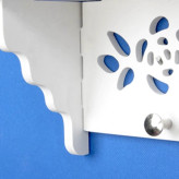 شلف دیواری جا آویز حوله ، این شلف یک طاقچه فانتزی می باشد که دارای چهار عدد آویز فلزی برای آویزان کردن حوله ، لباس ، کلید و وسایل دکوری است . از این شلف می توانید در حمام ، دستشویی و حتی اتاق منزلتان استفاده کنید و وسایل شخصی خود را بر روی آن آویزان کنید. علاوه بر این بر روی این شلف جایی برای قرار دادن گلدان ، مجسمه و وسایل دکوری کوچک نیز وجود دارد که بتوانید لوازم تزئینی خود را بر روی آن قرار دهید.