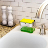 طراحی نوین ، عملکردی کاربردی و در مجموع یک پاسخ به نیاز هر آشپزخانه ، خصوصیات کلی و اصلی جا مایع ظرفشویی پمپی ، برای یک معرفی ساده و مفید به شمار می رود . این محصول دارای یک مخزن برای نگهداری مایع ظرفشویی می باشد که در میان آن پمپی تعبیه شده برای انتقال مایع از داخل محفظه به بیرون ، از قسمت بالا . بر روی صفحه نگهدارنده پمپ ، صفحه مسطح دیگری نیز قرار می گیرد که نگهدارنده اسکاچ است . با فشردن اسکاچ بر روی این صفحه و پایین رفتن آن ، مایع درون مخزن از داخل سوراخ های تعبیه شده بر روی صفحه به زیر اسکاچ منتقل و در نهایت اسکاچ را آغشته به مایع می کند . جا مایع ظرفشویی از جنس پلاستیک مقاوم و با کیفیت در رنگ های متنوع تولید شده که به همراه خود یک اسکاچ نیز دارد و مناسب برای استفاده درون هر آشپزخانه ای می باشد ، برای سهولت در انتقال مایع بر روی اسکاچ تنها با استفاده از یک دست ، کافیست اسکاچ را به سمت پایین بر روی پمپ فشار دهید ، حالا به راحتی ظروف و سطوح مورد نظر خود را بشویید .