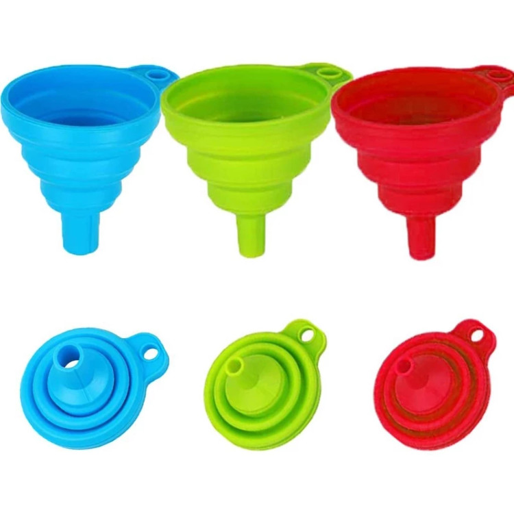 قیف تاشو سیلیکونی یکی از پرکاربردترین ابزار در بین لوازم آشپزخانه خواهد بود که وجود آن در هر آشپزخانه ای الزامی می باشد. از قیف تاشو علاوه بر مصارف خانگی در محیط های کاری نیز استفاده می شود. قابلیت تا شدن ، انعطاف زیاد ، مقاومت بالا در برابر حرارت ، سبک و کم حجم بودن از ویژگی های قیف سیلیکونی می باشد. همچنین رنگ بندی این محصول بسیار جذاب بوده و نظر هر بیننده ای را به خود جلب می کند. از قیف ژله ای تاشو می توانید در آشپزی ، کیک پزی و ریختن مایعات در ظروفی که درب باریک دارند استفاده نمایید.
