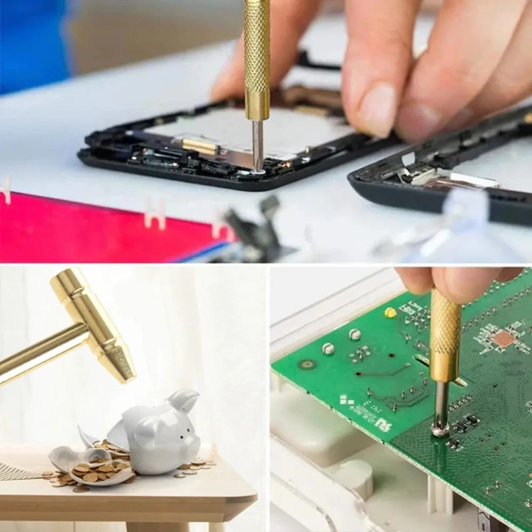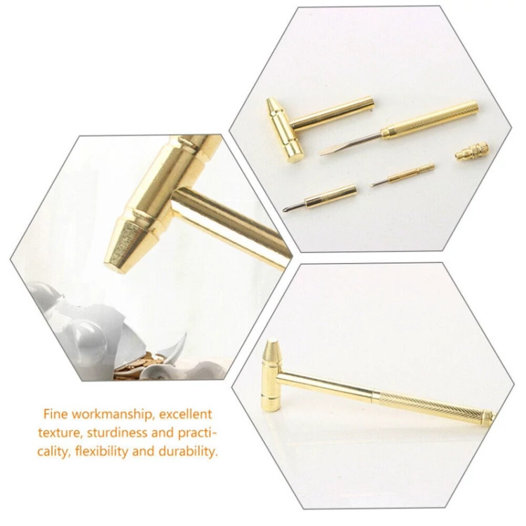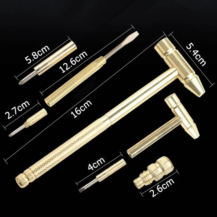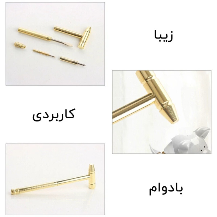 مینی چکش پیچ گوشتی دار ، نمونه ای جدید از ابزارهای چند منظوره کوچک می باشد که تولید شده از جنس فلز مقاوم با تنوع رنگ طلایی است . این ابزار در حالت معمول یک مینی چکش با طول کلی 16 سانتی متر همراه با سری 5.4 سانتی متری می باشد که با توجه به فلزی بودن جنس کالا می توانید برای کارهای سبک مانند زدن میخ از آن استفاده کنید ، اما همه چیز به یک چکش کوچک ختم نمی شود ، کافی است انتهای دسته چکش را به صورت پیچی باز کنید تا شاهد بیرون آمدن یک پیچ گوشتی دو سو باشید که متناسب با نیاز می توانید از آن بهره ببرید ، اگر به یک پیچ گوشتی چهار سو نیاز دارید ، کافیست انتهای پیچ گوشتی دو سو را نیز باز کنید تا این پیچ گوشتی خارج و در اختیار شما برای استفاده قرار گیرد . بازم هم ادامه دارد و این بار انتهای دسته پیچ گوشتی چهار سو را باید باز کنید تا بتوانید دو پیچ گوشتی دو سو و چهار سوی کوچک تر را ببینید که از آنها برای باز و بسته کردن پیچ های کوچکتر استفاده می شود . پس در نهایت با داشتن چکش چند کاره ، یک چکش ، دو پیچ گوشتی دو سو و دو پیچ گوشتی چهارسو در ابعاد مختلف را در اختیار خواهید داشت که سبک ، کم حجم و با قابلیت حمل و جابه جایی آسان هستند ، بنابراین همواره به همراه شما برای استفاده در موقع نیاز خواهند بود .