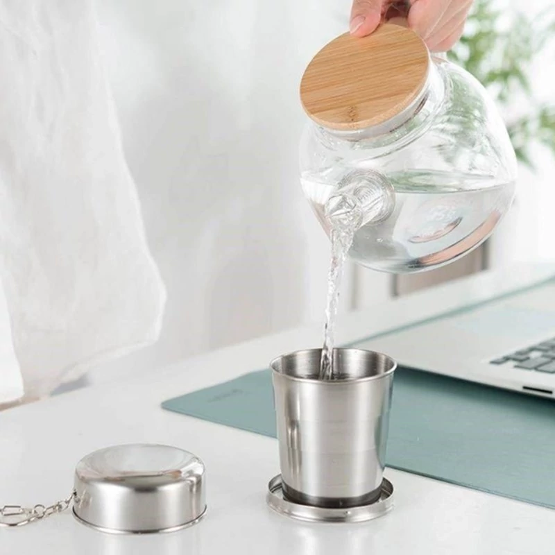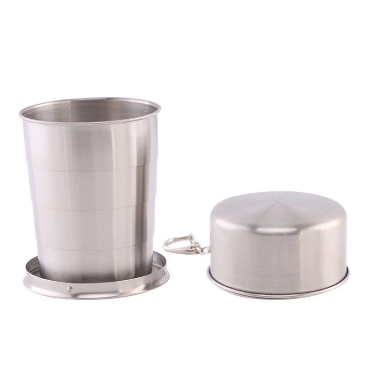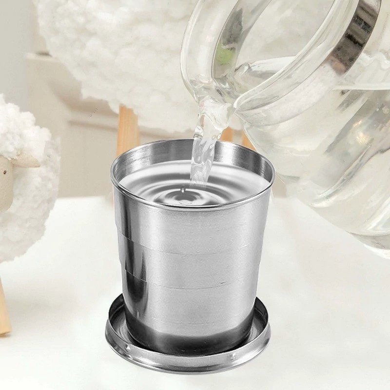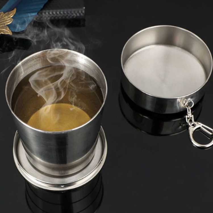 برای استفاده از لیوان تاشو استیل ، می بایست دیواره لیوان را به سمت بالا کشید و سپس کمی به سمت طرفین بچرخانید تا ثابت شود .