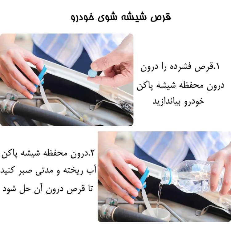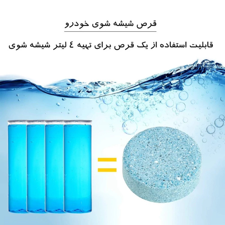 قرص شیشه شوی خودرو ، نسل جدید شیشه شورها است . محصولی جدید و بسیار کاربردی که همانند یک قرص به صورت فشرده با ابعاد و وزن کم طراحی شده ، خصوصیتی که امکان حمل و جابه جایی بسیار آسان جهت استفاده به هنگام نیاز برای کاربر را فراهم آورده ، بنابراین دیگر نیازی به حمل بطری ها و یا گالن های حاوی شیشه شور نخواهد بود . برای استفاده از قرص شیشه پاک کن ، کافی است یکی از آنها را داخل آب انداخته و کمی صبر کنید ، خواهید دید که همانند یک قرص جوشان عمل می کند و درون آب حل خواهد شد ، حالا محلول آماده است می توانید آن را داخل محفظه شیشه شوی ماشین ریخته و یا به صورت مجزا بر روی شیشه اسپری کنید . علاوه بر شیشه خودرو از محلول آماده شده می توانید برای تمیز کردن شیشه پنجره ، آینه ، سطوح مختلف نظیر سرامیک و ... نیز بهره ببرید . قرص تمیز کننده شیشه ماشین ارائه شده در بسته بندی 5 عددی است که از هر کدام برای تهیه حداکثر 4 لیتر مایع شیشه شوی می توان استفاده کرد .