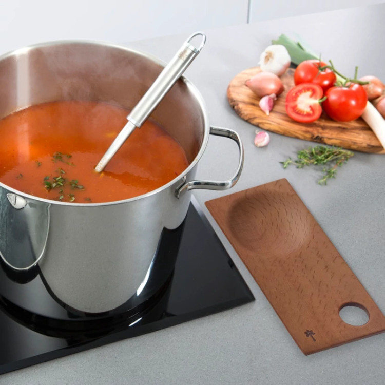 زیر قاشقی کنار گاز چوبی ، طراحی ظاهری ساده و در عین حال منحصر به فرد که زیبایی و جلوه ای خاص را برای محصول به همراه داشته . این زیر قاشقی از جنس چوب راش مرغوب و با کیفیت تولید شده که دارای مقاومت بسیار بالایی نیز می باشد . محصول دارای ظاهری مستطیلی شکل با قوس داخلی در قسمت جلویی می باشد که محل قرار گیری سر قاشق ، ملاقه ، کفگیری و ... می باشد . در گوشه پایین سمت چپ زیر ملاقه ای چوبی ، سوراخی تعبیه شده که از آن می توان جهت آویزان کردن محصول استفاده نمود . سطح یک دست و سیقلی زیر قاشقی چوبی را نمی توان نادیده گرفت که بسیار با کیفیت ساخته شده . سطح زیرین زیر قاشقی مسطح است و به صورت کامل بر روی سطح صاف قرار می گیرد . زیبایی ظاهری و ابعاد مناسب محصول در کنار کیفیت و مقاومت بالای محصول باعث شده تا بتوانید از آن در کنار هر اجاق گازی با هر تم رنگی استفاده کنید . توجه داشته باشید ، برای حفظ مقاومت ظروف چوبی ، برخی مواقع می بایست آنها را به روغن آغشته نمایید تا همواره از خشک شدن و اصطلاحاً ریش شدن آنها جلوگیری به عمل آید و بتوانید برای مدت زیادی از آنها استفاده نمایید ، بدون اینکه خراب و غیر قابل استفاده شوند .