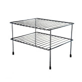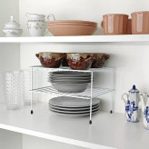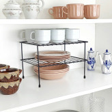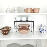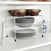 راف دو طبقه کابینت ، یک نظم دهنده فلزی با روکش لعاب سفید رنگ و البته ضخیم که می تواند به لوازم و وسایل داخل کابینت شما نظم بخشیده و امکان دسترسی آسان به آنها را فراهم کند . این راف فلزی دارای دو طبقه مجزا از یکدیگر می باشد که مناسب برای جای گیری درون و روی کابینت جهت قرار دادن لوازم و وسایل مختلف به صورت تفکیک شده با ایجاد امکان استفاده حداکثری از فضای داخل کابینت طراحی و ساخته شده . چهار پایه راف با استفاده از روکش محافظ پلاستیکی پوشش داده شده اند تا در صورت حرکت بر روی سطح کابینت مانع از ایجاد خراشیدگی آن شود . با استفاده از راف فلزی دوطبقه می توان کالاهای حساس که در حالت معمول قابلیت قرارگیری بر روی یکدیگر را ندارند نظیر لیوان و فنجان را به صورت مجزا از یکدیگر داخل یک کابینت جای داد و این یعنی بهره برداری بهینه از فضای موجود و کاهش محدودیت در کنار حفظ سلامت وسایل و ظروف .