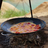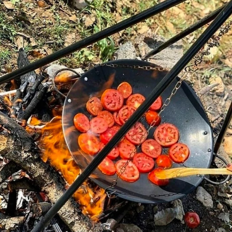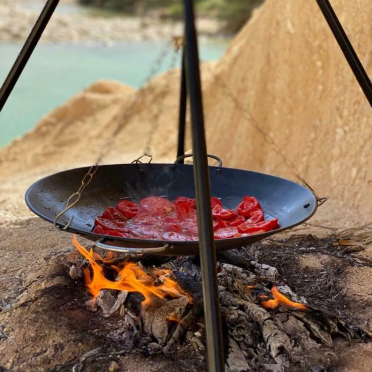 3 قلاب آویز تعبیه شده در سه طرف تابه برای اتصال به پایه و منقل (با استفاده از زنجیر)