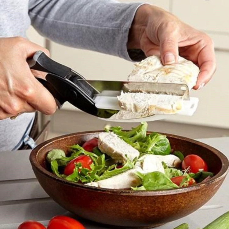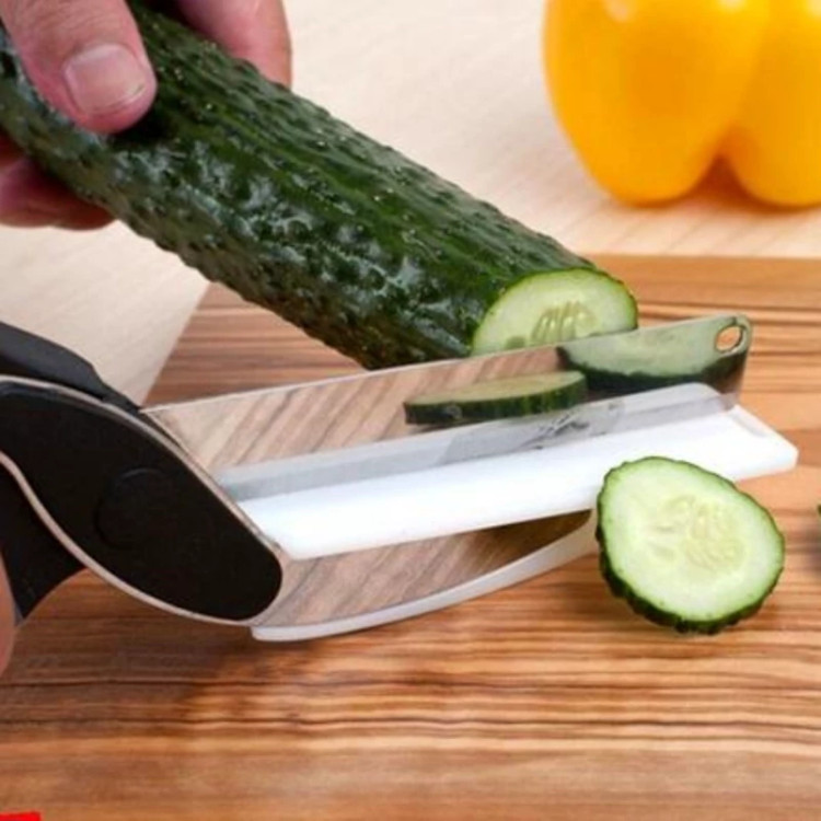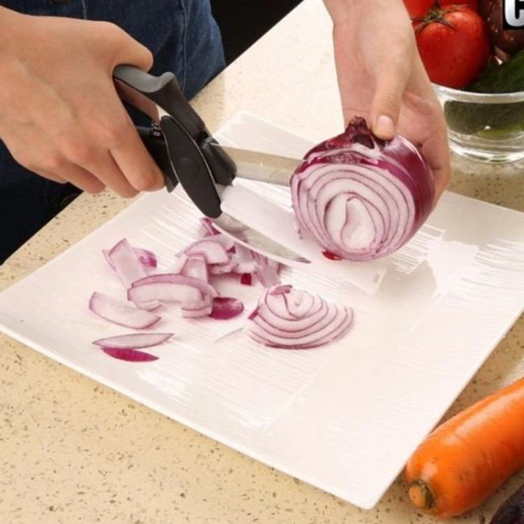 قیچی کاتر ، ابزاری با طراحی کاملاً نوین و بسیار کارآمد ، که نیار هر آشپزخانه است . قیچی کاتر ، درواقع حاصل ادغام دو ابزار تخته گوشت و چاقو های تیز آشپزخانه در یک محصول است . smart cutter ، ظاهری شبیه به یک قیچی دارد ، با این تفاوت که لبه پایینی آن یک تخته کوچک و لبه بالایی آن یک چاقوی بسیار تیز می باشد که به شما امکان می دهد در کترین زمان ممکن میوه ، سبزیجات ، گوشت و ... را خرد و تکه تکه کنید . قیچی آشپزخانه اسمارت کاتر ، نیازی به اشغال فضای زیاد همانند تخته گوشت و چاقو را ندارد و بسیار ایمن است . سهولت در استفاده و صرفه جویی در زمان و انرژی از ویژگی های قیچی کاتر است .