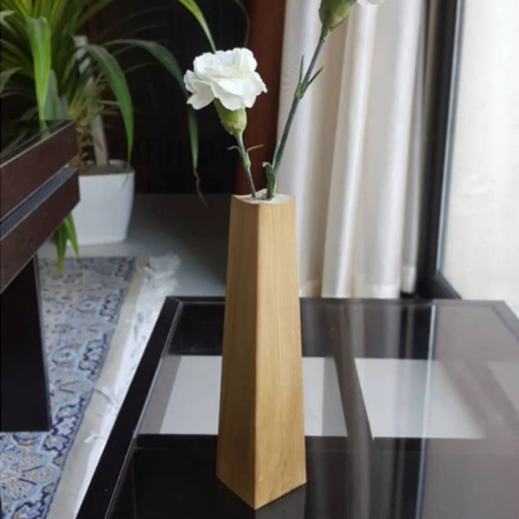 ابعاد گلدان چوبی مدل سرو : (طول : 3.7 سانتی متر) * (عرض : 3.7 سانتی متر) * (ارتفاع : 16.8 سانتی متر)