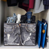 باکس شلوار طرح جین ، محصولی جدید با طراحی ظاهری خاص و منحصر به فرد که حاصل خلاقیت و ذوق تولیدکننده آن است . این کالا یک باکس مستطیل شکل اسکلت دار (اسکلت مقوایی) می باشد که می توانید از فضای داخل آن برای جای دادن شلوار و دیگر لباس ها به صورت تاشده و منظم با امکان دسترسی آسان استفاده کنید ، بدین ترتیب قابلیت بهره برداری از فضای موجود داخل کمد به صورت حداکثری برای کاربر فراهم خواهد شد . دو دستگیره تعبیه شده در دو طرف استند شلوار طرح شلوار جین ، قابلیت جابه جایی و حمل آسان آن را فراهم نموده و در نهایت اگر نیاز به آن نداشته باشید قادر خواهید بود استند را تا کرده و در فضایی اندک داخل کمد و کشو نگهداری کنید . اما اصلی ترین وجه تمایز این محصول جذاب را باید شمایل ظاهری آن عنوان کرد ، چراکه به شکل یه شلوار جین طراحی شده ، این موضوع توانسته جلوه ای متفاوت و خاص به آن ببخشد ، طوری که بتواند نظر اغلب افراد با سلیقه های متنوع و متفاوت را به خود جلب نماید . این کالا در دو رنگ دودی و آبی ارائه می شود که می توانید از آن برای نگهداری شلوار ، لباس و وسایل مختلف دیگر داخل کمد ، کشو و ... استفاده کنید .