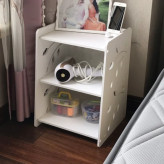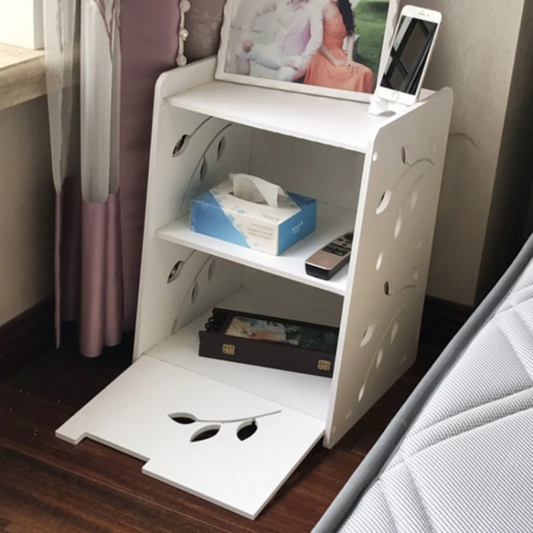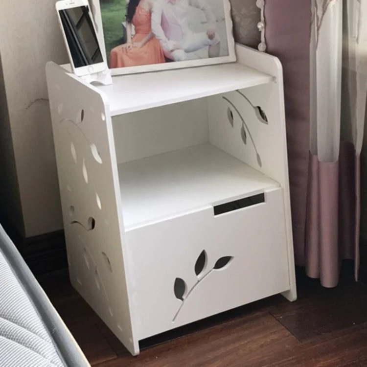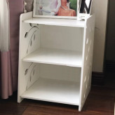 کنسول کنار تخت ، یکی از جدیدترین نوع شلف های ایستاده است که مخصوص اتاق خواب طراحی شده . ابتدایی ترین ویژگی این کنسول را می توان طراحی ظاهری بسیار زیبا و جالب توجه آن عنوان کرد . بر روی دیواره ها و همچنین درب ها ، شاخه های برگ در دو سایز بزرگ و کوچک طراحی و برش خورده که بر زیبایی و جذابیت محصول افزوده اند . شلف کنسول کنار تختی ، دارای سه طبقه شامل یک میز و دو محفظه درب دار می باشد که درب های آن در خلاف جهت یکدیگر به سمت بالا و پایین باز می شوند و می توانید درون آنها لوازم و وسایل مختلف را به صورت منظم و تفکیک شده قرار دهید . شلف کنسول تخت خواب از جنس پی وی سی با کیفیت تولیدی بسیار بالایی ساخته شده که در برابر آب و رطوبت کاملاً مقاوم است ، بنابراین به سادگی می توانید آن را تمیز و یا در صورت نیاز بشویید.