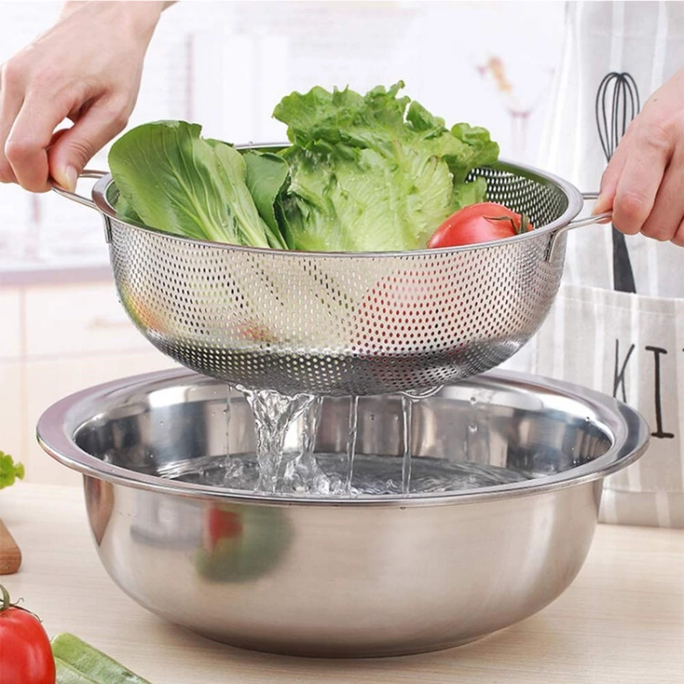 آبکش استیل پانچ ، ابزاری کاربردی و در عین حال مورد نیاز هر آشپزخانه ای است . این محصول که جایگزینی مناسب برای نمونه های مشابه خود می باشد از جنس استیل مقاوم تولید شده و در بسته بندی 6 عددی ارائه می شود . آبکش 6 تکه استیل پانچ دارای سبد در 6 سایز مختلف است که متناسب با نوع نیاز خود می توانید از آنها استفاده کنید . در دو طرف هر یک از سبدها دستگیره ای تعبیه شده که امکان جابه جایی با تسلط کامل بر آنها را فراهم می آورد و بر روی سطح زیرین نیز حلقه ای استیل با سه برجستگی به عنوان پایه های سبد قرار گرفته که فضای لازم برای خروج آب ناشی از شست و شوی را فراهم آورده . ابعاد متنوع سبدها امکان قرارگیری آنها درون یکدیگر را در صورت عدم نیاز فراهم آورده ، بنابراین فضای زیادی برای نگهداری داخل و یا روی کابینت اشغال نخواهد کرد . از سرویس آبکش استیل پانچ می توانید در آشپزخانه منزل ، رستوران ها ، سالن های غذاخوری و یا هر جای دیگری که نیاز به ابزار کارآمد آشپزی دارید استفاده کنید .
