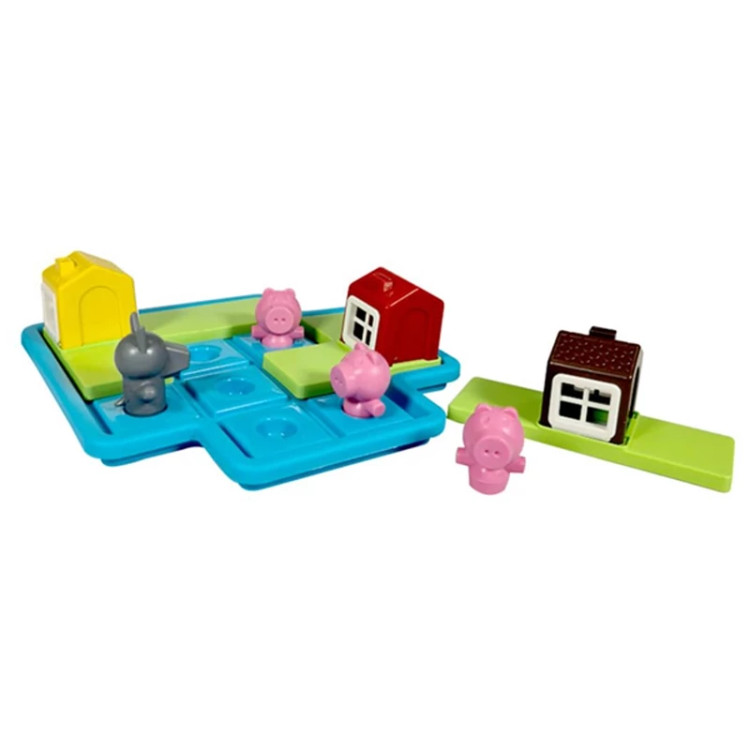 بازی فکری سه بچه خوک ، نمونه ای جدید از سرگرمی های فکری جذاب و دوست داشتنی است که برگرفته از یک داستان معروف با همین نام می باشد . در این بازی سه بچه خوک و یک گرگ وجود دارند که با توجه به چالش های بازی می بایست آنها را بر روی زمین بازی قرار داده و از بچه ها در برابر گرگ محافظت کنید . 48 چالش آسان ، متوسط و دشوار برای کودک داخل این بازی جای داده شده تا بتواند علاوه بر سرگرمی ، مهارت هایی نظیر تفکر فضایی ، برنامه ریزی ، حل مسئله و استدلال را درون خود پرورش دهد .