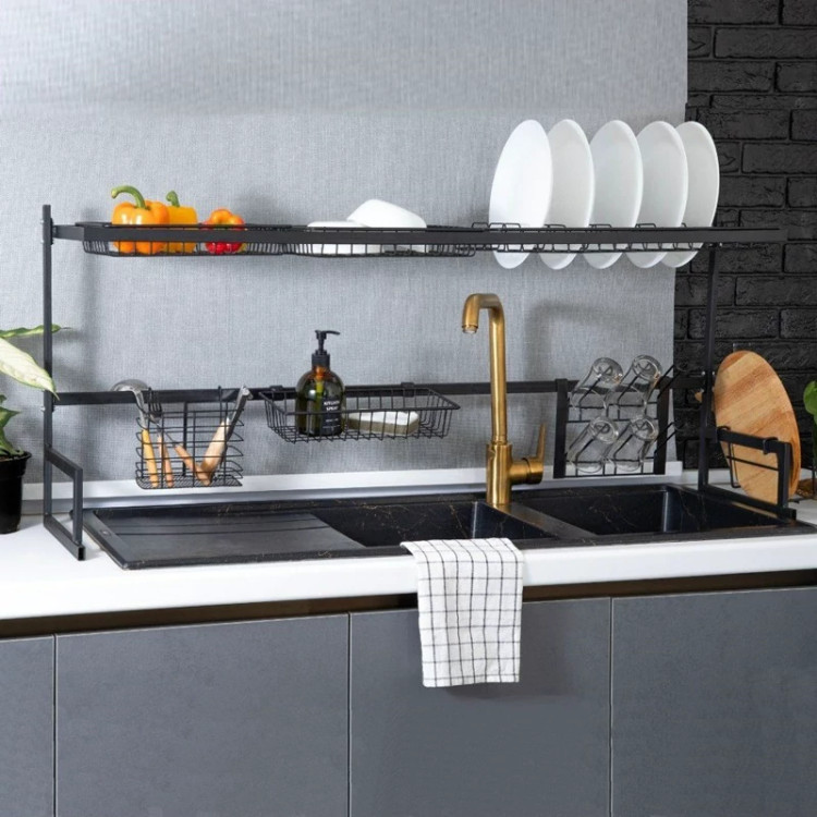 آبچکان زیر پنجره ، محصولی با طراحی نوین ، زیبا و بسیار کاربردی جهت استفاده در بسیاری از آشپزخانه ها برای افزودن امکان بهره برداری از فضای غیر قابل استفاده به عنوان فضای کاربردی است . این محصول از جنس فلز مقاوم تولید شده که با استفاده از رنگ کوره ای پوشش داده شده و در برابر رطوبت و آب مقاومت بسیار بالایی دارد . آبچکان روی سینک ظرفشویی مناسب برای سینک هایی است که در زیر پنجره و یا به صورت جزیره در آشپزخانه قرار می گیرند و عملاً فضایی مانند آبچکان های کابینتی را بالای سر خود برای قرار دادن ظروف شسته شده ندارند . آبچکان به گونه ای طراحی شده که پایه های آن بر روی دو طرف سینک شما قرار میگیرد و فضایی را در بالای آن با استفاده از سبد های مختلف و مجزا ایجاد می کند تا بتوانید از آنها برای آبگیری و خشک کردن ظروف مختلف استفاده نمایید . آبچکان پشت پنجره شامل سه سبد آبگیر ویژه بشقاب ، کاسه و ظروفی نظیر آنها ، یک سبد بزرگ برای قرار گرفتن اسکاج و مایع ظرفشویی ، استند لیوان و فنجان ، نگهدارنده تخته گوشت و همچنین آبچکان مخصوص کارد ، چنگال و قاشق می باشد که البته از هر کدام از آنها می توانید بسته به نیاز برای قرار دادن لوازم دیگر نیز استفاده نمایید . قابلیت جابه جایی سبدهای آبچکان و چیدمان آنها متناسب با سلیقه و یا حتی راحتی در دسترسی را می توان از دیگر ویژگی های آبچکان روی سینک ظرفشویی عنوان نمود . آبچکان جلو پنجره ارائه شده در رنگ های سفید و مشکی و نقره ای می باشد که امکان استفاده بر روی سینک های مختلف را دارد.