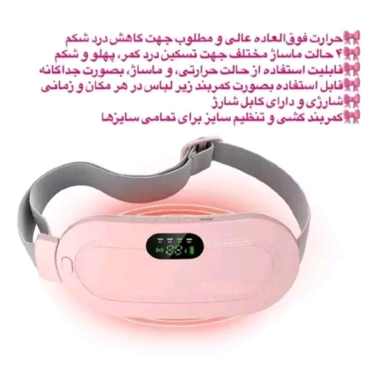 کمربند و ماساژور حرارتی علاوه بر آرام کردن دردهای شدید دوران پریود به تسکین دردهای عضلانی نیز کمک میکند. همچنین استفاده از این محصول برای دوره نقاهت بعد از عمل نیز مفید است.