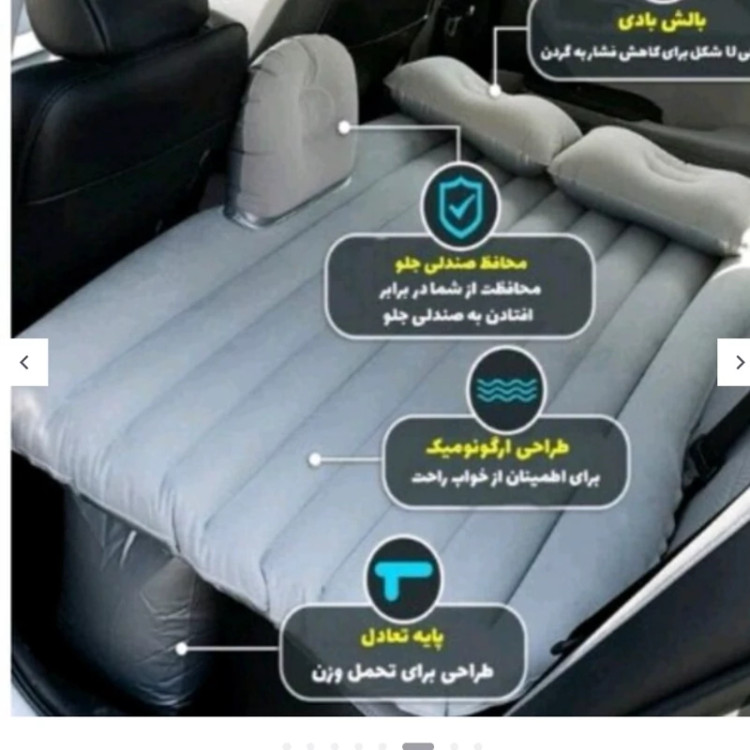 تشک بادی ماشین مخصوص صندلی عقب جنس PVC تحمل وزن 600 کیلوگرم سبک و کم حجم / اشغال فضای کم بسیار نرم و انعطاف پذیر قابل استفاده بر روی کلیه خودرو های ایرانی و خارجی وسیله ای کاربردی برای استراحت و یا خواب بزرگسالان و کودکان در مسافرت، استخر، کمپ و... قابل استفاده در چادر های مسافرتی هر پکیج شامل: تشک بادی دو تیکه در زیر پایی صندلی عقب برای تعادل تشک 2 عدد بالشت 1 پمپ باد فندکی رویه جیر ضد تعریق . ابعاد تشک: 134x86x۱۱cm ابعاد بالشت: 41x25cm مشخصات پمپ باد: دارای پمپ باد برقی فندکی خودرو ولتاژ ورودی: DC12v قدرت: 75w