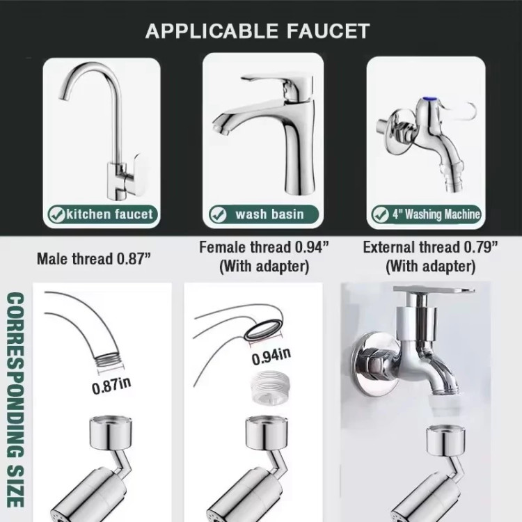 این سرشیر امکان تغییر زاویه 360 درجه را برای شما فراهم میآورد. در این سر شیر، یک بازو با زاویه 90 درجه رابط بین خروجی و اتصال به شیر آب است، بازویی که علاوه بر تغییر شکل ظاهری کالا توانسته است امکان دسترسی با زاویه بهتر را برای شما فراهم آورد. این سر شیر پلاستیکی مقاوم دارای 3 بازو، مشتمل بر سری اتصال به شیر آب، سری خروجی و بازوی میانی است که هر کدام قابلیت چرخش 360 درجه را دارند، بنابراین سر شیر آب چرخان در مجموع امکان چرخش 1080 درجه را خواهد داشت، خصوصیتی که میتواند به آسانی شرایط لازم برای تنظیم زاویه خروجی آب توسط کاربر، بسته به نیاز را فراهم کند. به عبارت سادهتر در هر زاویهای میتوانید خروجی شیر آب را تنظیم کنید، پس با حداقل محدودیت روبهرو خواهید بود. خروجی سرشیر آب تلسکوپی، پوشش پلاستیکی با قابلیت چرخشی دارد که امکان پاشش آب در دو حالت را فراهم خواهد کرد، پس به سادگی نصب و با زوایای مختلف در جهات بالا، پایین، چپ و راست استفاده کنید.