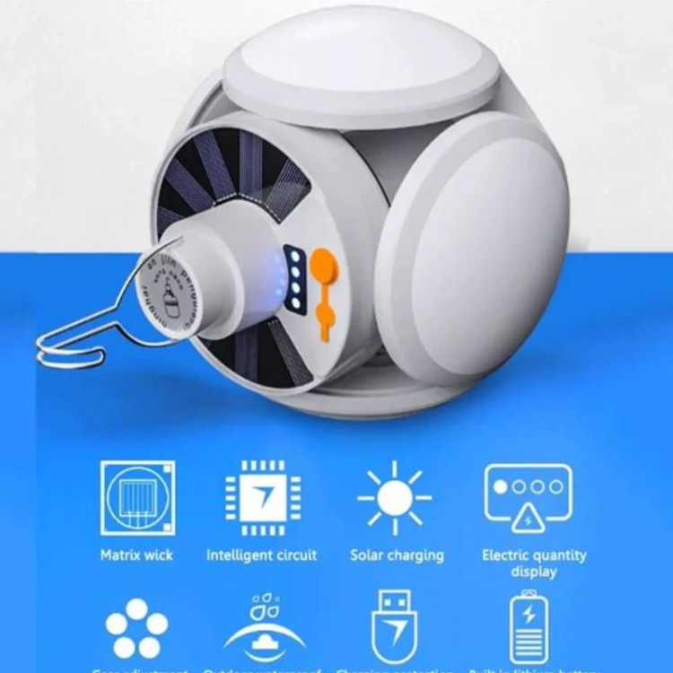 با 4 حال نور دهی: زیاد ، متوسط ، SOS حالت فلاشر و ذخیره انرژیچراغ قوه قدرتمند برای مواقع اضطراریچراغ خیابانی خورشیدی برای کمپینگ، پیادهروی ، ماهیگیری، مسافرتبا طراحی منحصر به فردحالت تاشو که باعث انعطاف در نوردهی و کاهش و افزایش نور می گردددارای محافظ داخلی برای جلوگیری از شارژ و گرمای بیش از حد است