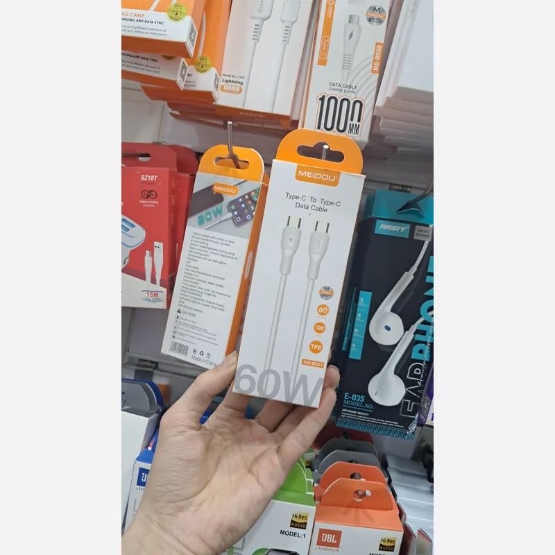 کابل شارژ دوسرتایپ سی فست شارژ60وات برندMEIDOYارسال رایگان کابل شارژ دوسرتایپ سی کابل شارژر اصلی