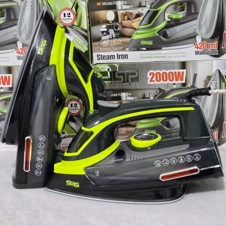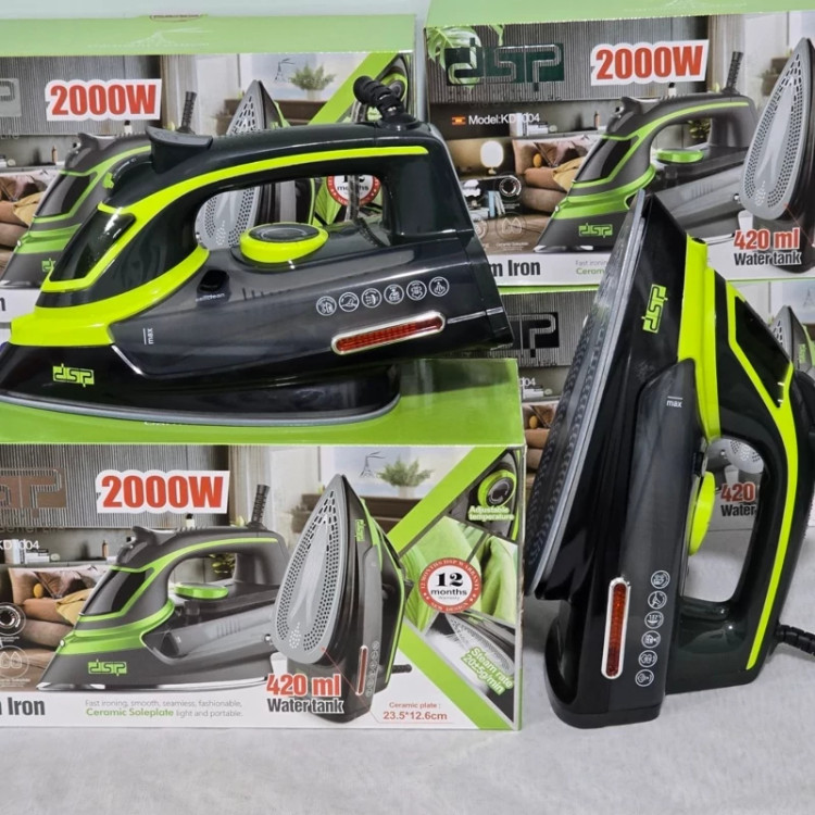 ✅ اتو بخار DSP KD1004 ⬅️ کف سرامیکی ضدرسوب ⬅️ توان مصرفی 2000 وات ⬅️ قابلیت اسپری کردن آب ⬅️ چرخش 360 درجه ⬅️ سیستم ضد رسوب ⬅️ بخاردهی عمودی