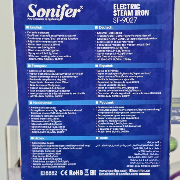 مشخصات اتو بخار سونیفر 2000 وات SF-9027 :