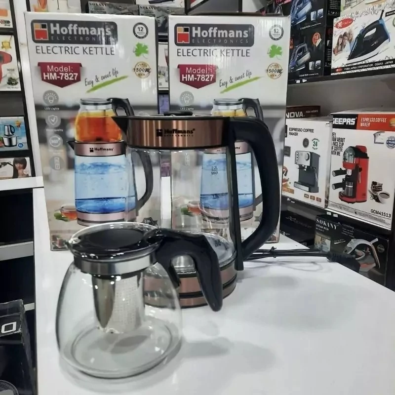 گنجایش کتری 2.2 لیتر و گنجایش قوری 0.8 لیتر است که به کمک این گنجایش میتوانید به راحتی 15-20 فنجان چای آماده کنید. هافمن HM-7827 دارای ابعاد 250x200x360 میلیمتر است و بر روی یک قسمت از کابینت به راحتی جای میگیرد.