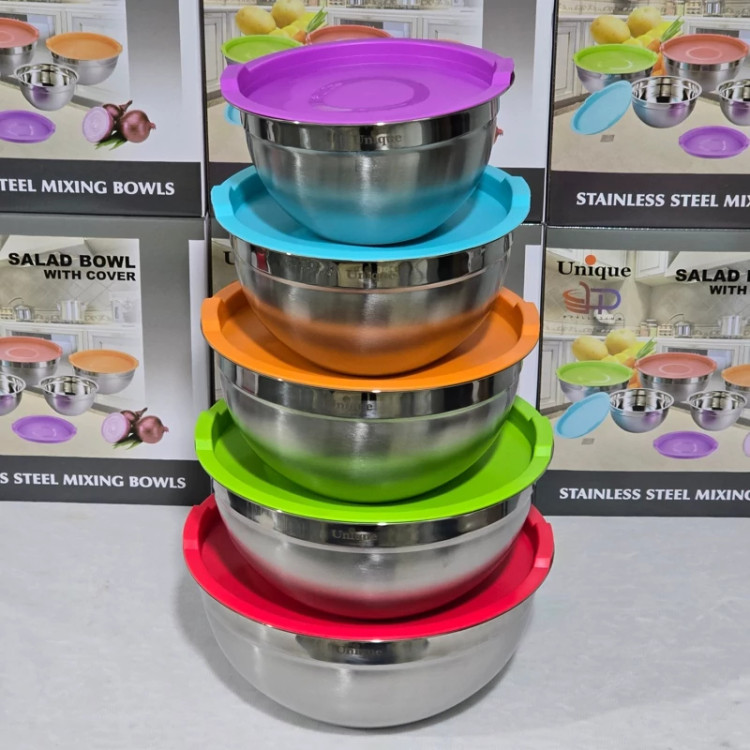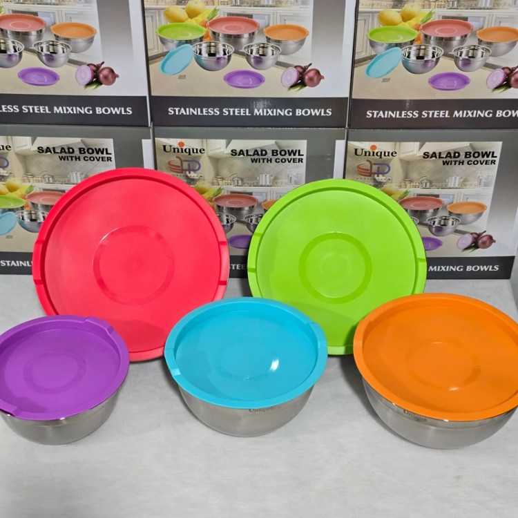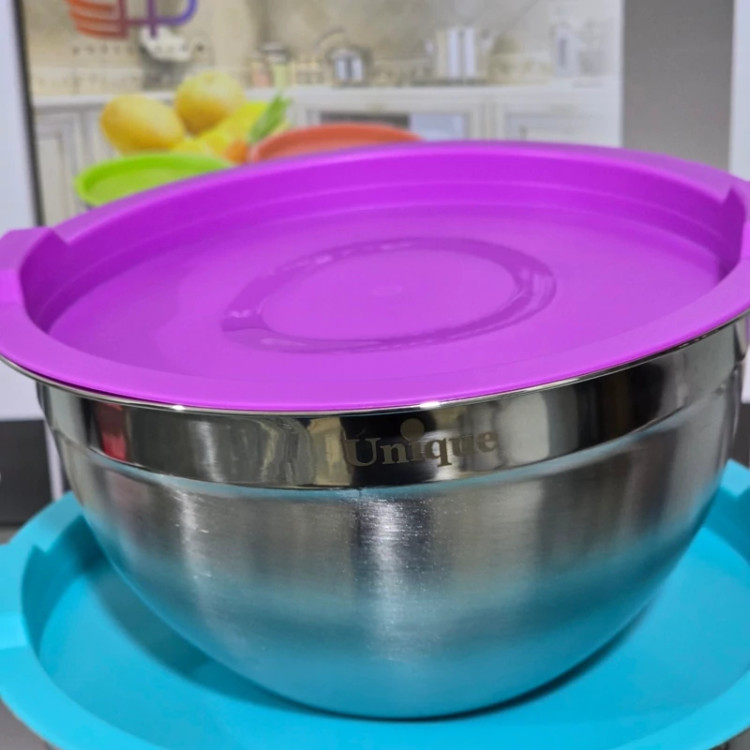 کاسه استیل (5 تکه) یونیک UNIQUE (ارسال رایگان) (اورجینال) درب رنگی