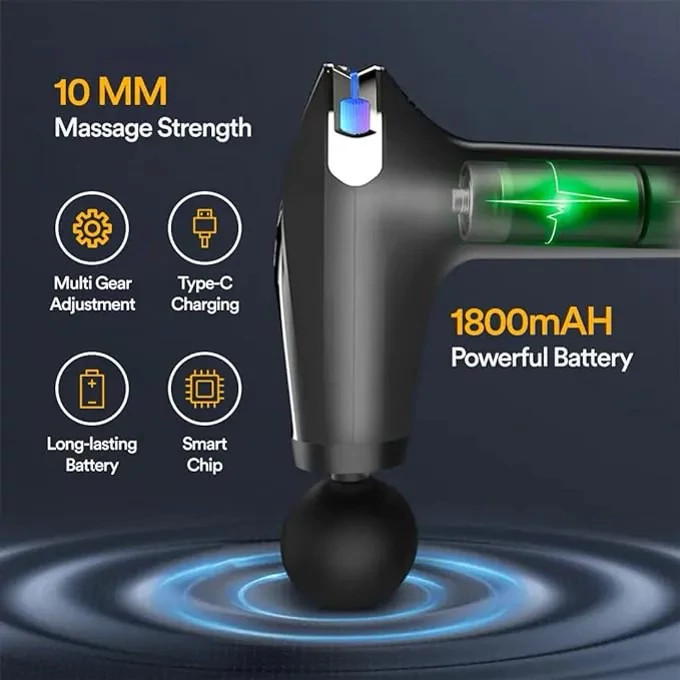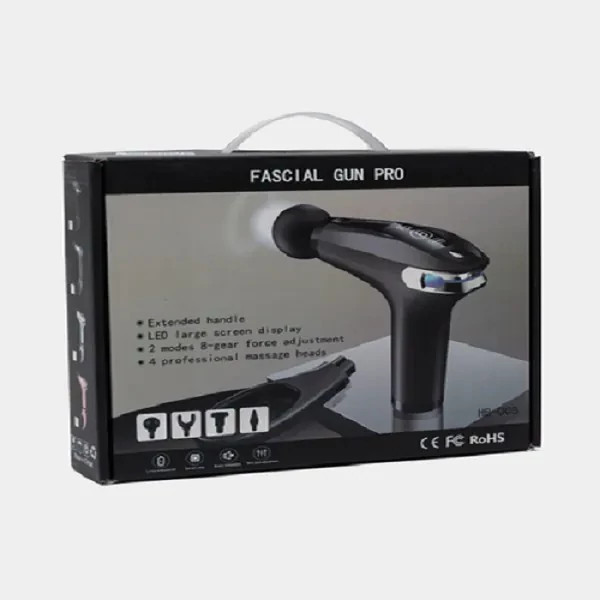 ماساژورتفنگی fascial gun pro دارای 4سری است که عبارتند از : U_shape head /ball head/wolf tooth head/conical head سریU_shape ماساژور تفنگی fascial gun pro مدلHB_005: این سری یو شکل مدل HB-005 برای ماساژ گردن و تاندون و آشیل ستون فقرات مناسب است.سری wolf tooth headماساژور تفنگی fascial gun pro مدلHB_005: این سری دندان گرگی ماساژور تفنگی fascial gun proبرای ماساژ پاها،باسن و سایر تحریکات عمیق عضلانی بزرگ مناسب است.سری ball shapeماساژور تفنگی fascial gun pro مدلHB_005: این سری ماساژور تفنگی مدل HB-005برای ماساژ قسمت های مختلف عضلانی مانند کف دست و پا و غیره مناسب است.سری conicalماساژور تفنگی fascial gun pro مدلHB_005: این سری مدل HB-005 برای ضربه به بافت های عمیق نقاط طب سوزنی کاشت مانند مریدیون ها و مفاصل مناسب است.موارد استفاده از ماساژور تفنگی fascial gun pro مدل HB_005: – درد و اسپاسم ناشی از کوفتگی عضلانی، رگ به رگ شدن و کشیدگی عضلات – کمک به جریان خون در ناحیه متورم – در مواردی که بافت همبند از بین رفته اند – کاهش تجمع لاکتیک اسید در عضلات – افزایش دامنه حرکت مفاصل -رفع خستگی عضلات دارای قابلیت1800تا 3200 ضربه در دقیقه دارای کابل شارژ تایپ C منبع تغذیه باتری قابل شارژ نوع ماساژ ضربه ای و لرزشی دارای صحفه نمایش LCD پورت شارژ دارای باتری 1800میلی آمپری حاوی چهار عدد سری دارای 8 سرعت قابل تنظیم دارای نمایشگر میزان شارژ دارای تایمر 15 دقیقه ای دارای دسته ای با قابلیت اتصال و جداسازی دارای دکمه خاموش و روشن و تنظیم سرعت دارای چراغی با هفت رنگ