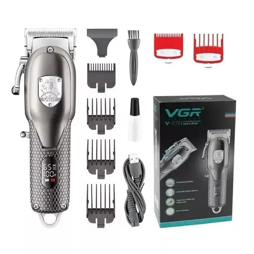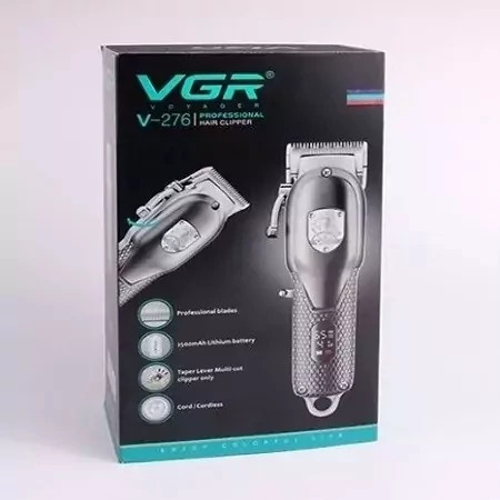 ماشین اصلاح vgr 276 دارای تیغه هایی از جنس استیل ضد زنگ و ضد حساسیت است که قابلیت خود تیز شوندگی هم دارند. تیغه ی این دستگاه T شکل است که با تکنولوژی برش مستقیمی کار می کند، همچنین وزن بسیار سبکی دارد که این مزیت باعث می شود در حین اصلاح دست شما خسته نشود. این محصول قابل شارژ 2500 میلی آمپری است و با سه ساعت شارژ به مدت 300 دقیقه قابل استفاده برا اصلاح است. دارای نمایشگر LED است که نشانگر لزوم روغن کاری و میزان شارژ دستگاه است. این محصول مناسب حجم دهی، فید و سایه زنی است و با طراحی ارگونومیکی که تولید شده است، خوش دست بوده و کار را با آن راحت کرده است.از روغن درون جعبه پس از هر بار روغن کاری استفاده کنید تا دستگاه شما مثل روز اول کار کند و دوام بیشتری داشته باشد