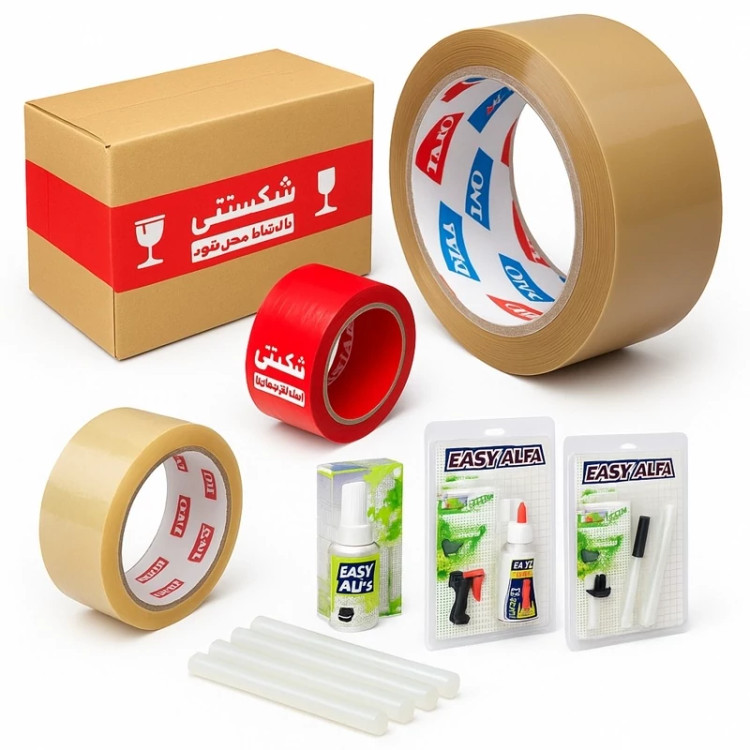 چسب کارتن قهوهای: 5 سانتی، مقاوم برای بستههای سنگین.